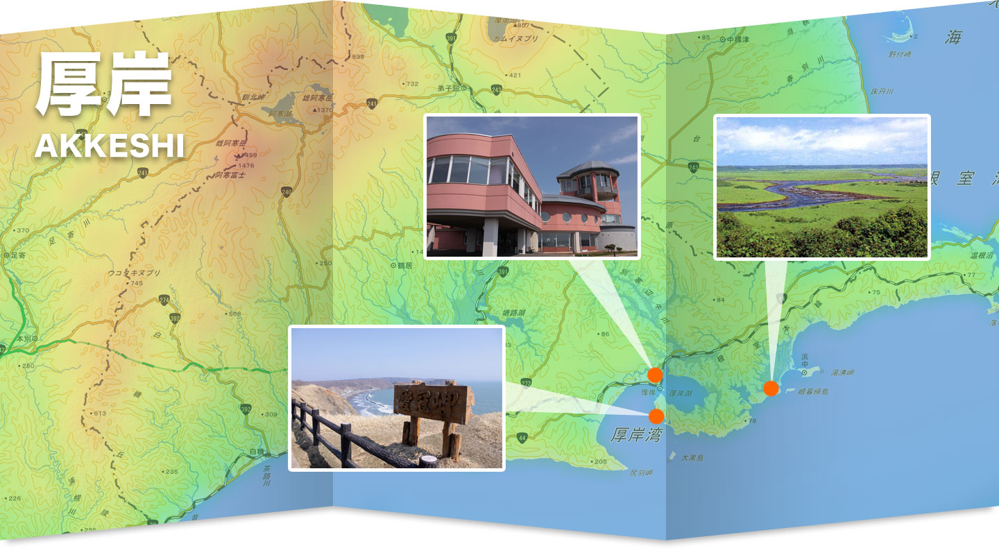 厚岸の代表的な名所愛冠(あいかっぷ)岬は、愛とロマンの岬とか、愛が結ばれる岬とかいわれる素晴らしい名前です。 原名はアイヌ語の「アイ・カップ(矢の上のもの)」の意で、矢が届かないところから、できない・とどかないという意味も持っています。